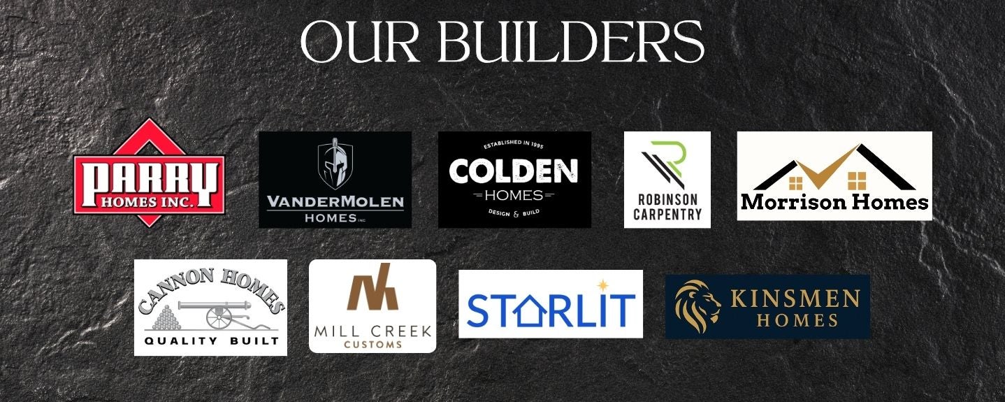 Parry Homes, Vandermolen Homes, Colden Homes, Robinson Carpentry, Morrison Homes, Cannon Homes, Starlit Homes, Mill Creek Customs, Kinsmen Homes
