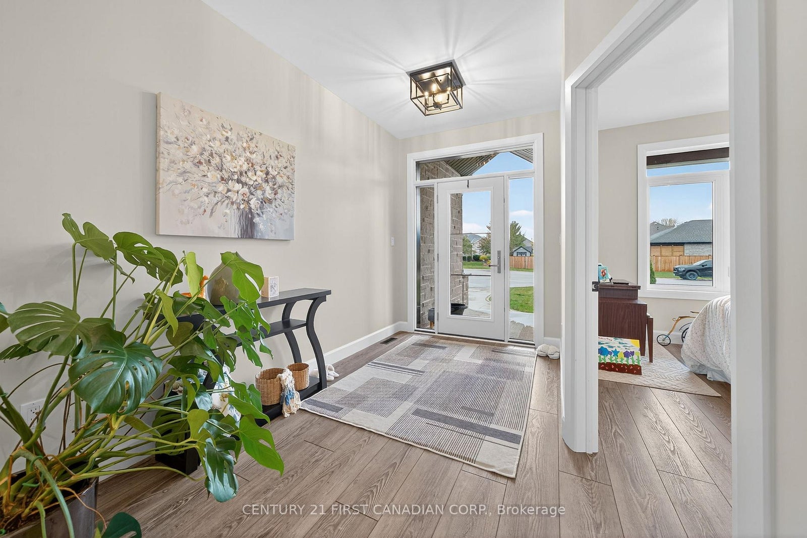 Welcome to the beautiful town of Forest! This fully bricked home, complimented with a stone front, is situated at the end of a quiet street on a premium lot that opens into a peaceful court. This one-floor carpet free home blends modern comfort with thoughtful design. Step inside and you will be greeted by a bright, open-concept layout that is ideal for everyday living and entertaining alike. The spacious kitchen is a true highlight, featuring a large walk-in pantry that offers exceptional storage and organization. The adjoining dining and living areas flow seamlessly together, creating a warm, inviting space for family gatherings or quiet nights in. The covered patio leading off the dining room expanding your living space. The primary bedroom suite is a private retreat, complete with a large walk-in closet with custom built-ins and a beautiful 4-piece ensuite. Every detail has been crafted with comfort and functionality in mind. For hobbyists, car enthusiasts, or anyone who loves extra space, the heated 25' x 23' garage is a dream - fully lined with Trusscore panels for a clean, durable finish. Downstairs, the lower level is already drywalled and ready for your finishing touches, with a 4-piece bathroom and roughed-in laundry area, offering a fantastic opportunity to expand your living space. Outside provides privacy with a fully landscaped yard. Set in one of Forest's most desirable areas, this home delivers small-town charm, quality craftsmanship, and exceptional value all in one package.